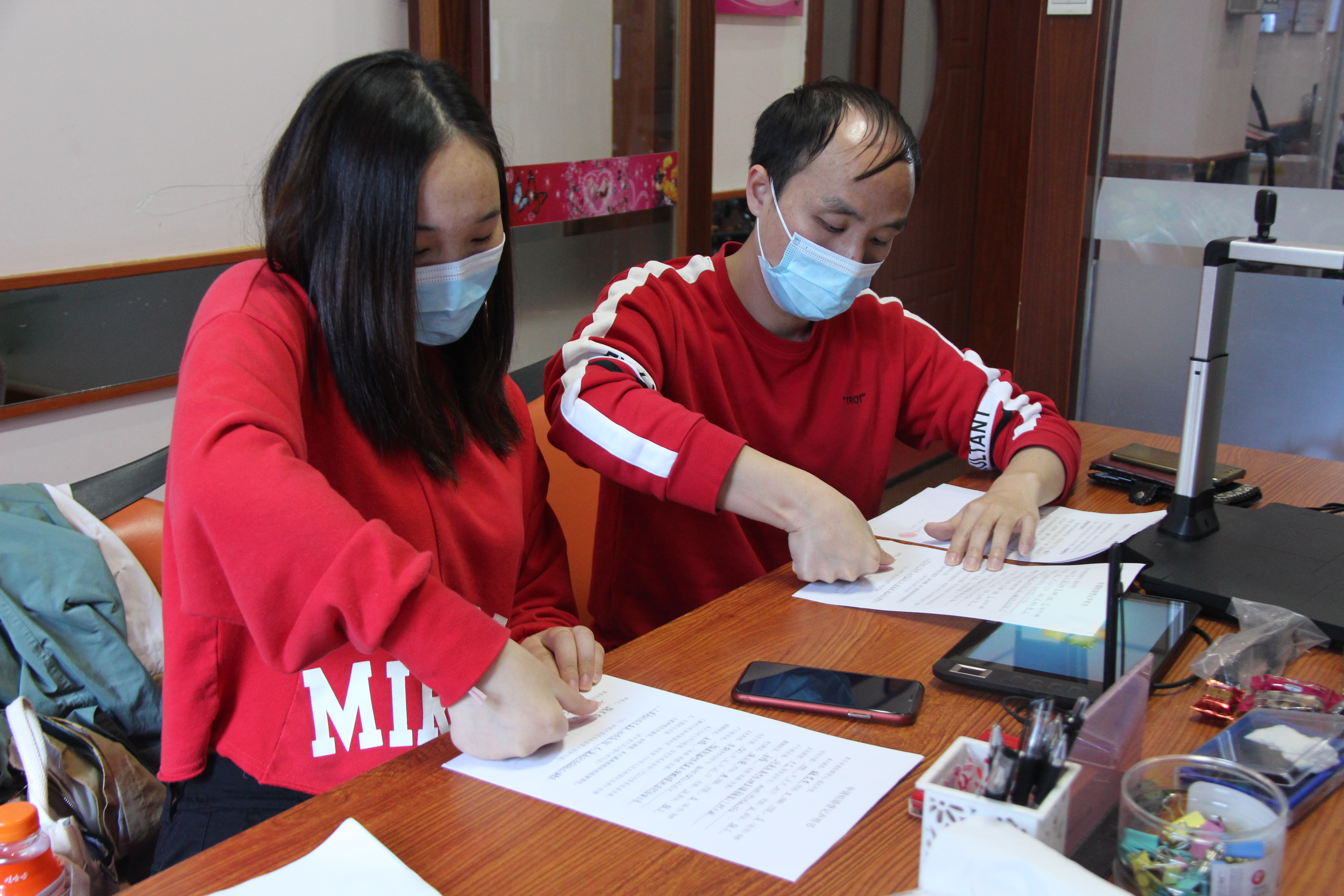 8点30分,记者在现场并没有等到预约的第一对新人。10点,特意穿了红色衣服的魏笑笑和陈日栋如约而至,得知自己是今天第一对进行婚姻登记的新人,他们表示很惊喜。现场,民政局工作人员指导两位完成材料递交、填写,拍照,领证等流程,同时建议新人可以及时进行婚检。
