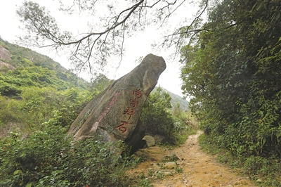 横穿过磨溪,一条小路可上山坡,路边一刻有“南宫拜石”字样的巨石似拱手的青衣学士,它缘自米芾(fú)拜石的故事,米芾,字元章,又称米南宫,润州人,宋书活动家,官礼部员外郎,知无为军。《宋史》记载:“无为州治有巨石,状奇丑,芾见大喜曰‘此足以当吉拜’!具衣冠拜之,呼之为兄。”。今人无法猜测米芾拜的石兄是何模样,但“南宫拜石”还是垂眉俯首地立于路侧,迎接八方游客的到来。